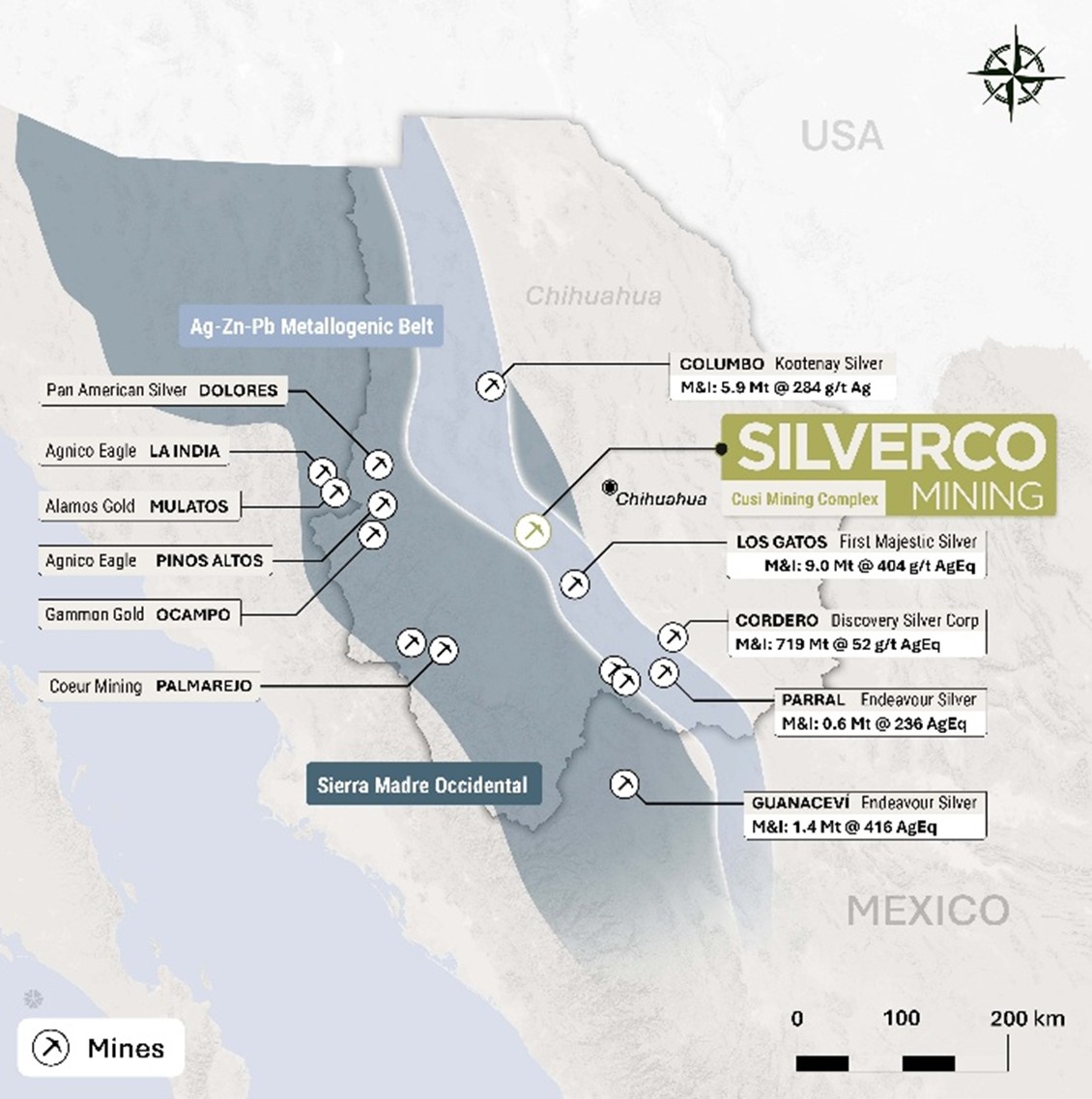 The 100%-owned Cusi Property, located in Chihuahua State, Mexico, includes a fully permitted, past-producing underground silver, lead, and zinc mine with a 1,200-tonne-per-day mill, where silver accounted for approximately 85% of the value of recovered metals in 2022.